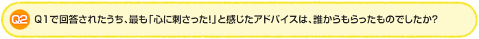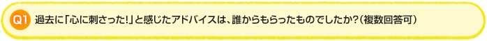 今回は、「心に刺さったアドバイス」についてお伺いしました。最も「心に刺さった!」アドバイスをもらった相手の1位は「上司」で23%、2位が「家族」「先輩」で18%、3位「友人」で14%という結果に。仕事ができる上司からの的確で温かいアドバイスが印象に残っている方が多いようでした。