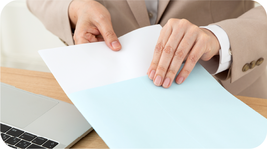 書類を折って入れる