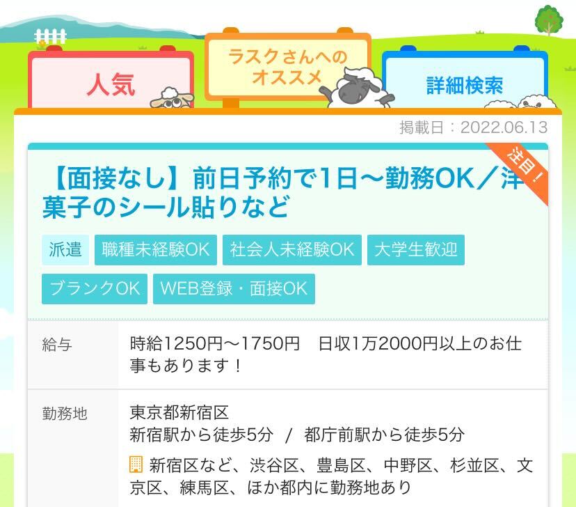 (1)サイトのいろいろな所に表示される水色の求人が、カスタマイズされます。あなたがプロフィールに設定した住所や条件を参考にして、なるべく興味を持っていただけるような求人が表示されるようになります。